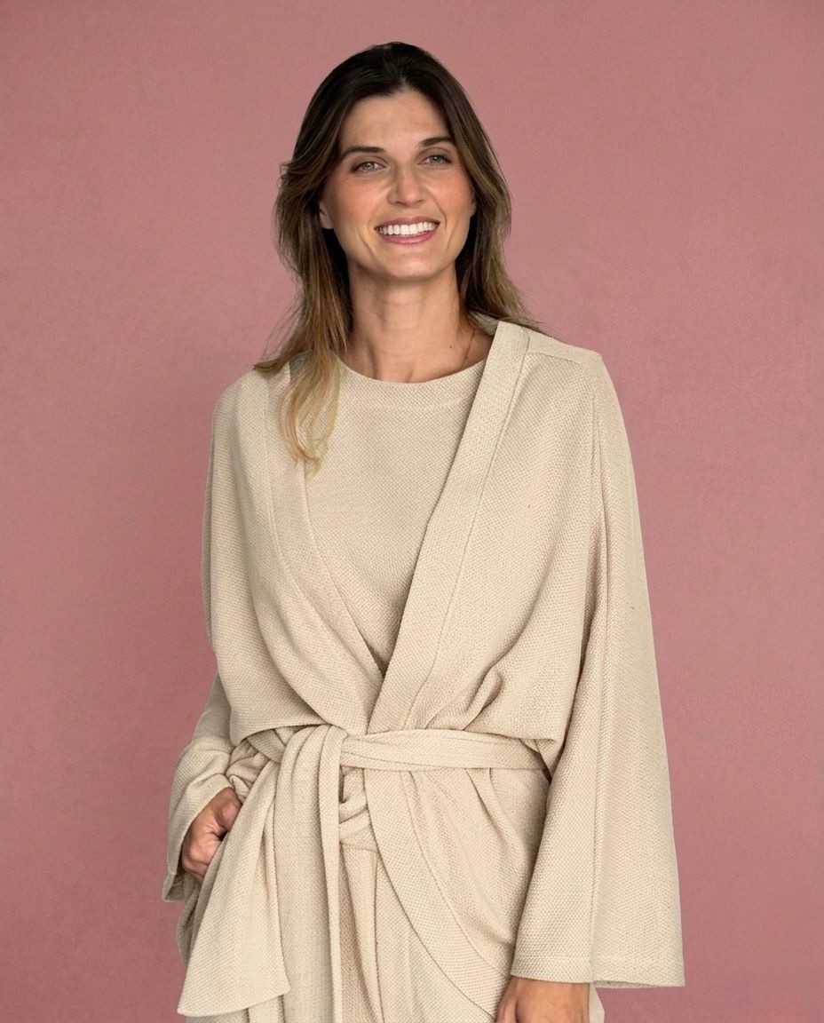 O Kimono Panna é uma terceira peça que traz fluidez, aconchego e presença.