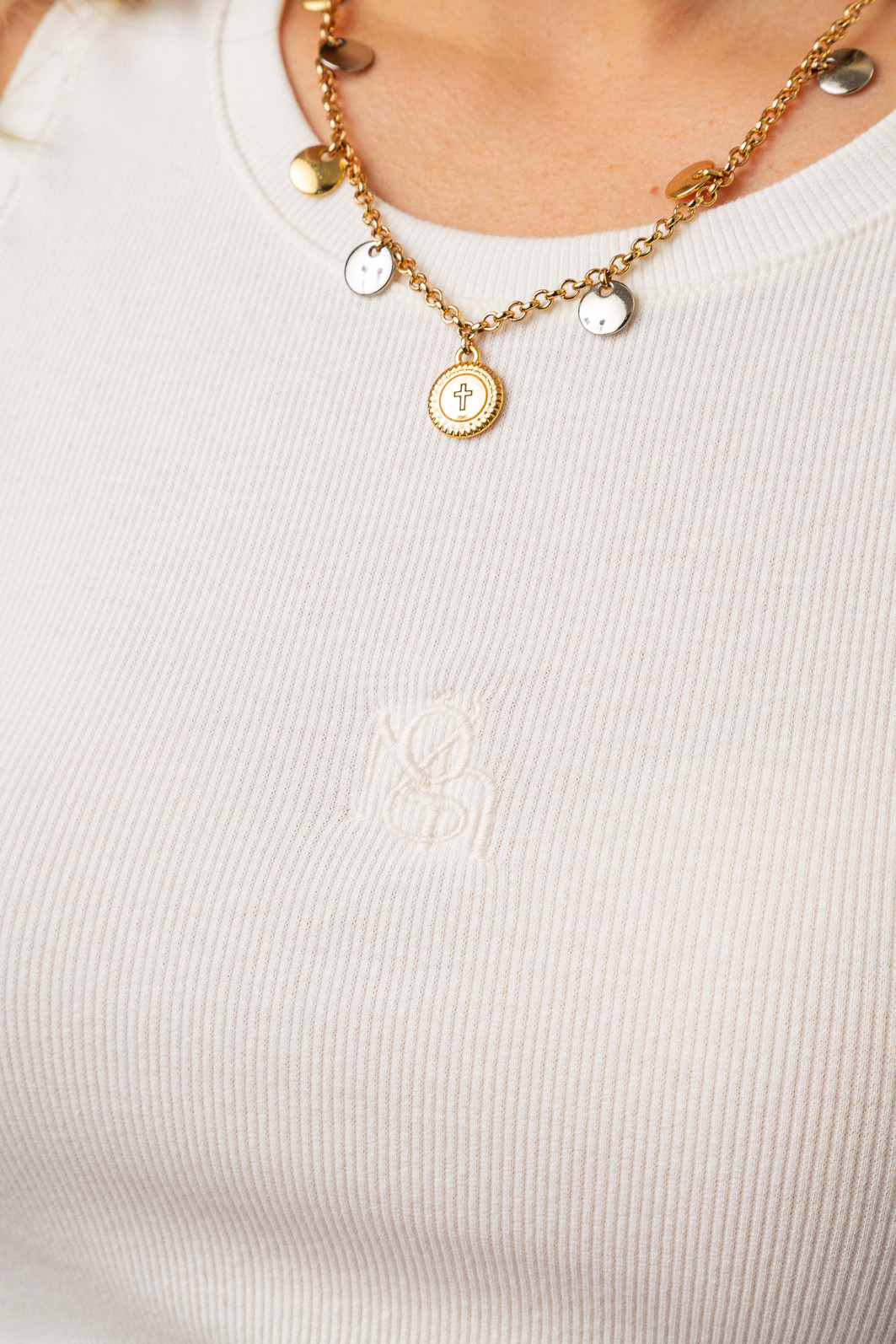 Cada peça traz a assinatura da Nögah bordada tom sobre tom, um detalhe sutil que carrega a identidade da marca com discrição e refinamento.