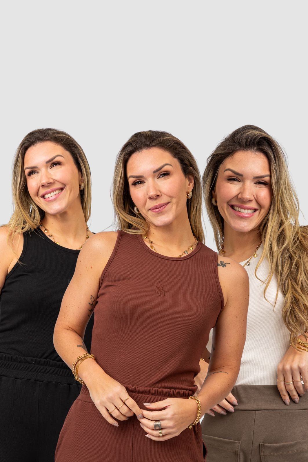 O Kit de Regatas Nounou é feito em viscose canelada de toque suave e caimento perfeito — ideal para quem busca conforto com sofisticação no dia a dia.