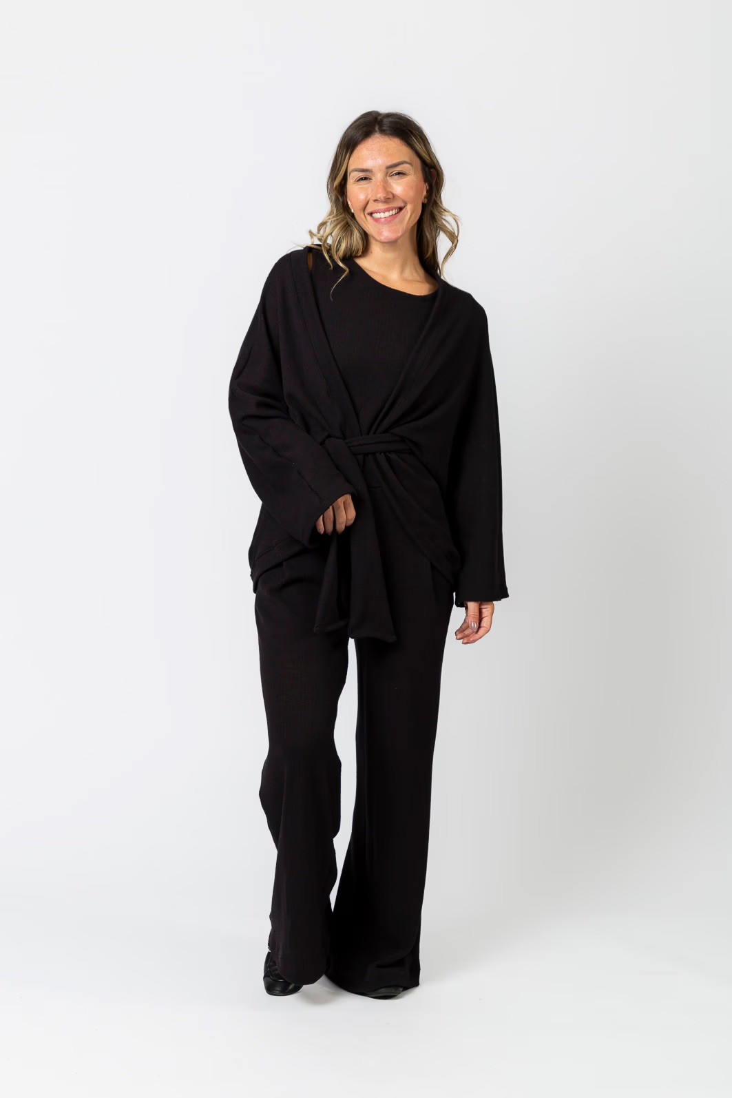 A textura é o elemento que conecta tudo. A trama aberta e o efeito artesanal criam uma identidade forte, enquanto as modelagens equilibram conforto e estrutura.